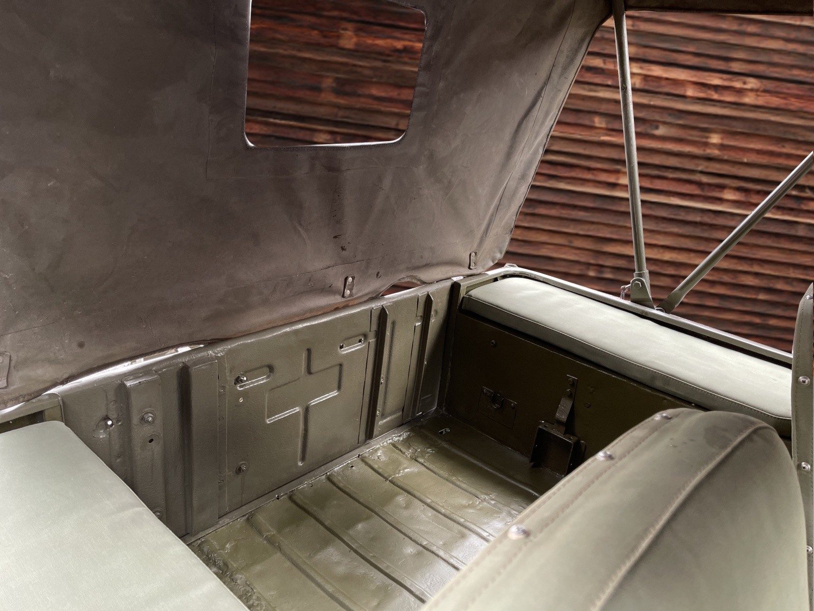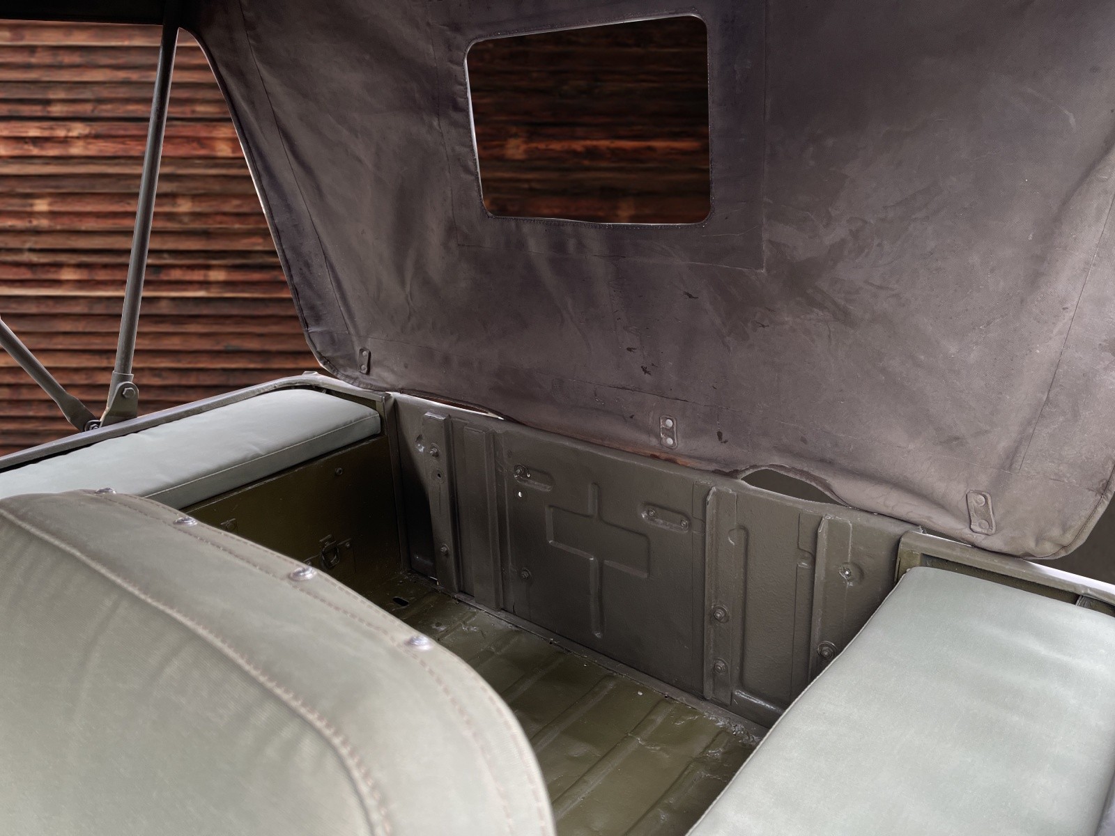Klappbare Frontscheibe, Ersatzrad an der Rückseite, Anhängerkupplung vorhanden